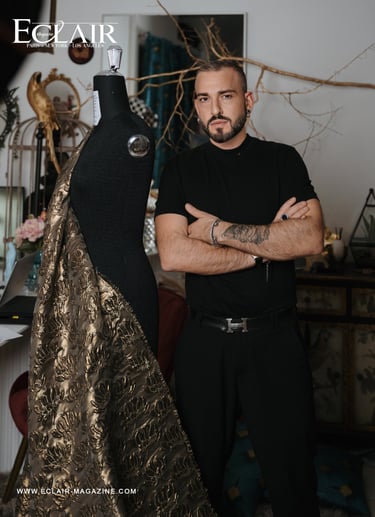 Through hard work, discipline, and meeting the right people at the right time, Riccardo has transformed his passion into a thriving career. Today, he leads his own atelier in the heart of Milan, where creativity meets precision. Every morning, Riccardo and his team set out to design not just clothing, but dreams for their clients. “I do a lot of research and am very attentive to details, which always make the difference,” he says.